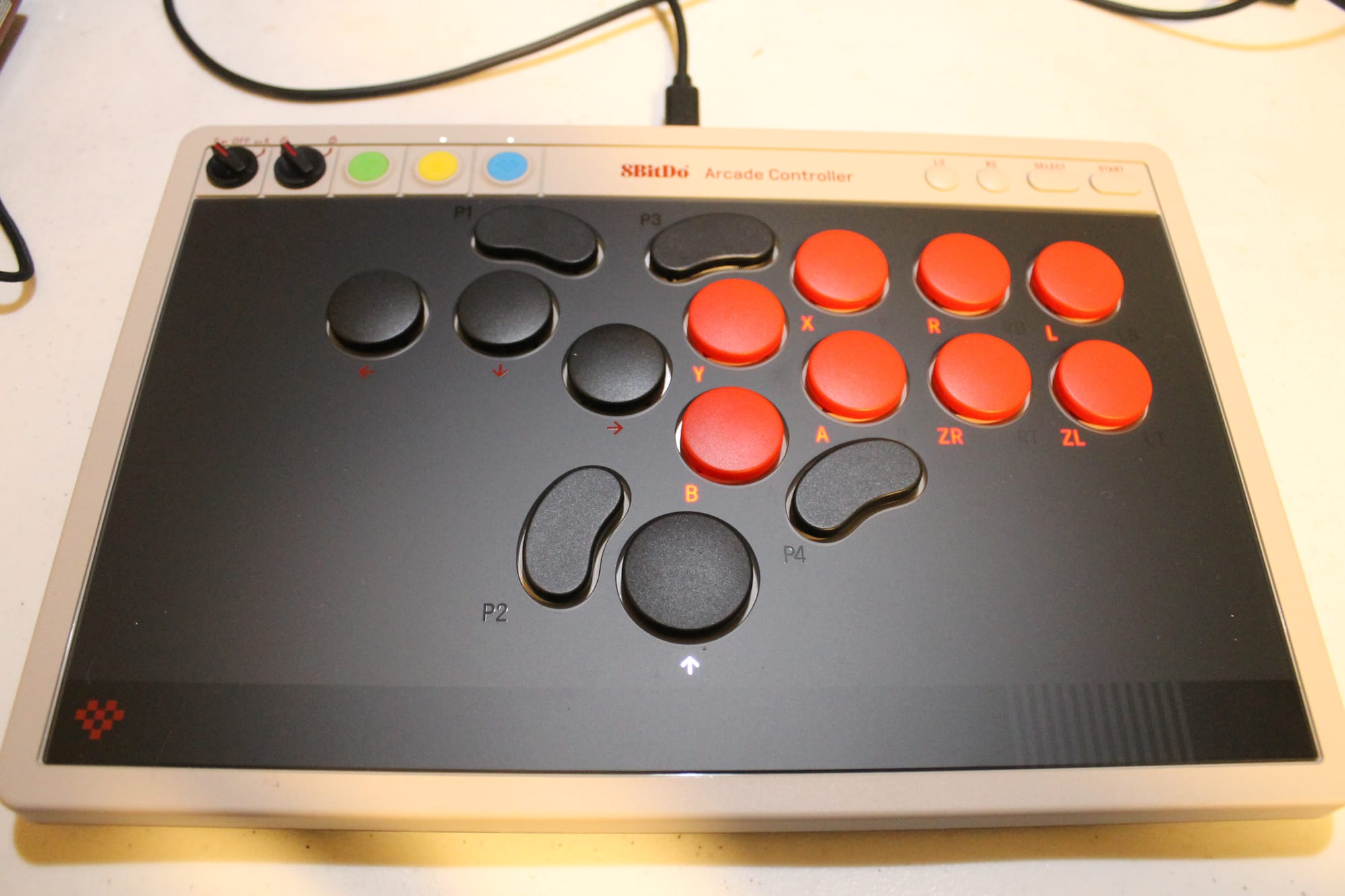 in windows, you can install 8bitdo's 'ultimate software', this allows you to 1) update the firmware, and 2) customize all the buttons. i was able to create a profile, to save my customized button layout/settings, using their software. and then i was able to return to linux, yay! and then in linux, you can use the yellow button on the top of the arcade controller to toggle on/off the profile i/you create with your custom button layout, and those settings are saved in the controller i guess (Thank You, 8bitdo)