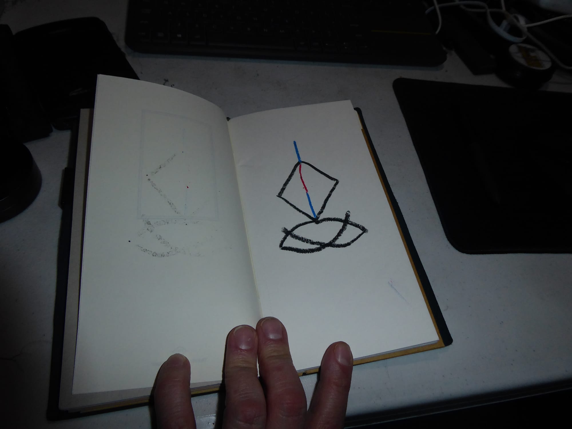 modernized, it kinda shows the fluidity and unity i guess of the head and hands, while showing a red (heart/ blood/ vital(ity) connection) between head and hands.