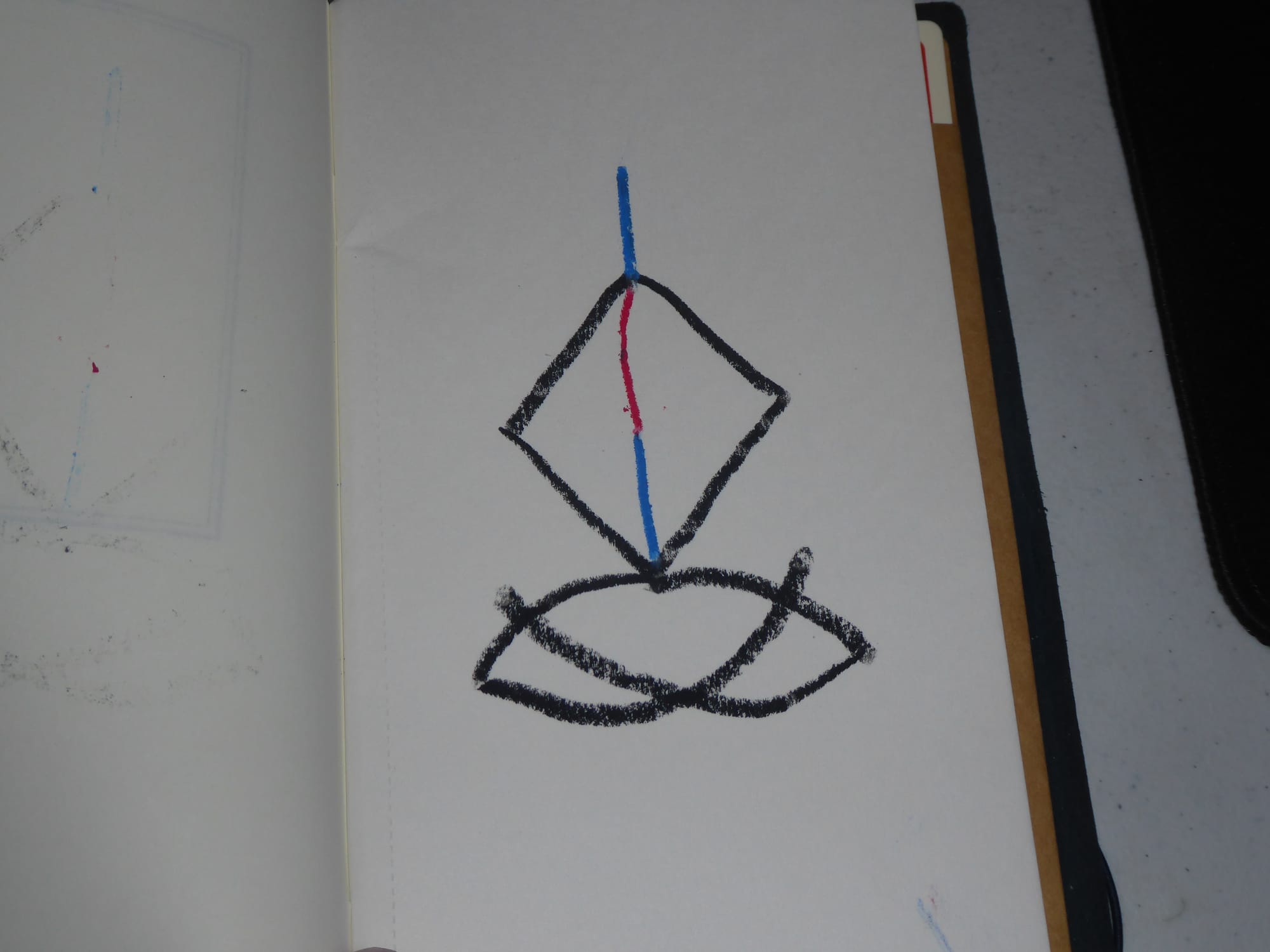 so for original (without red segment), it could be seen with figure sitting cross legged, with either his hands together palm to palm above his head, or in front of him, with an empty space between his lowered hands/palms and his head/face (which would be the top then).