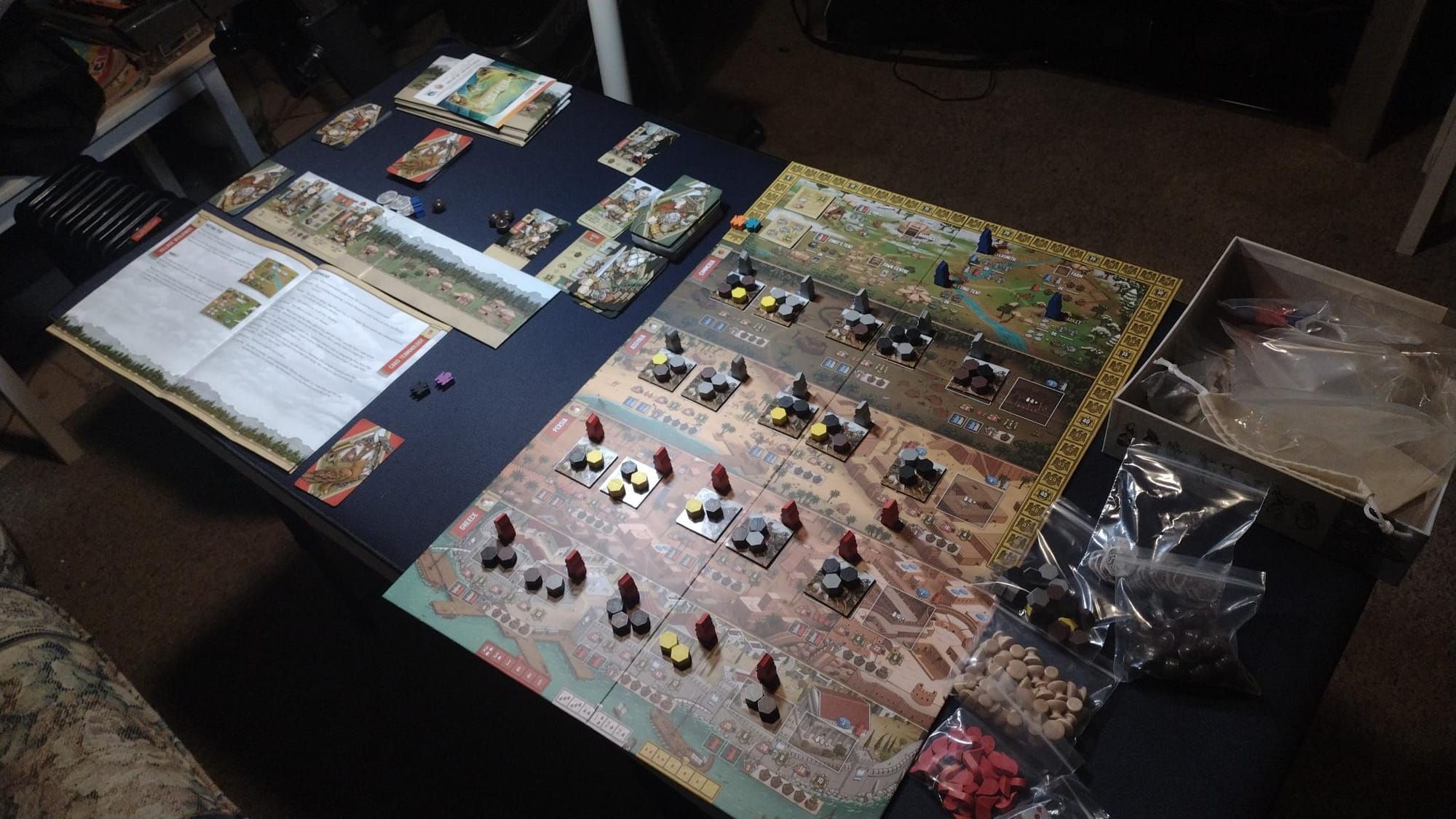 so the mat (the blue surface underneath) did arrive, and now i couldn't imagine trying to embark on this venture without a mat. i've had a thought to look online for info/tutuorials on rules/gameplay. but now i'm rather thinking to learn it 'on my own' with included instructions and trial/error.